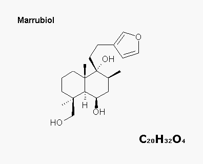 diterpenové hořčiny (columbin, manool, marrubenol, marrubiin, marrubiol, rosmanol,...)