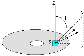 Světelný paprsek dopadá na obdélníkovou plošku kolmo (do bodu S). Jestliže tuto plošku pozorujeme (z bodu O) pod měnícím se úhlem b vzhledem ke kolmici dopadu, jeví se nám ploška vždy jinak zabarvená. Tak je tomu u žárovky se spojitým spektrem. Barva plošky se při změně úhlu tedy mění.