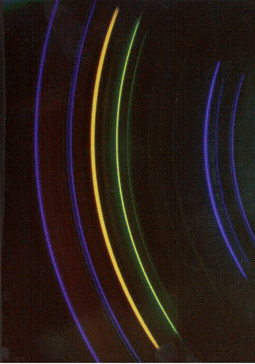 Při prvním pohledu si každý jistě všimne že spektrum není spojité, ale je tvořeno výraznými zjasněními v některých barevných odstínech (viz emisní spektrum).